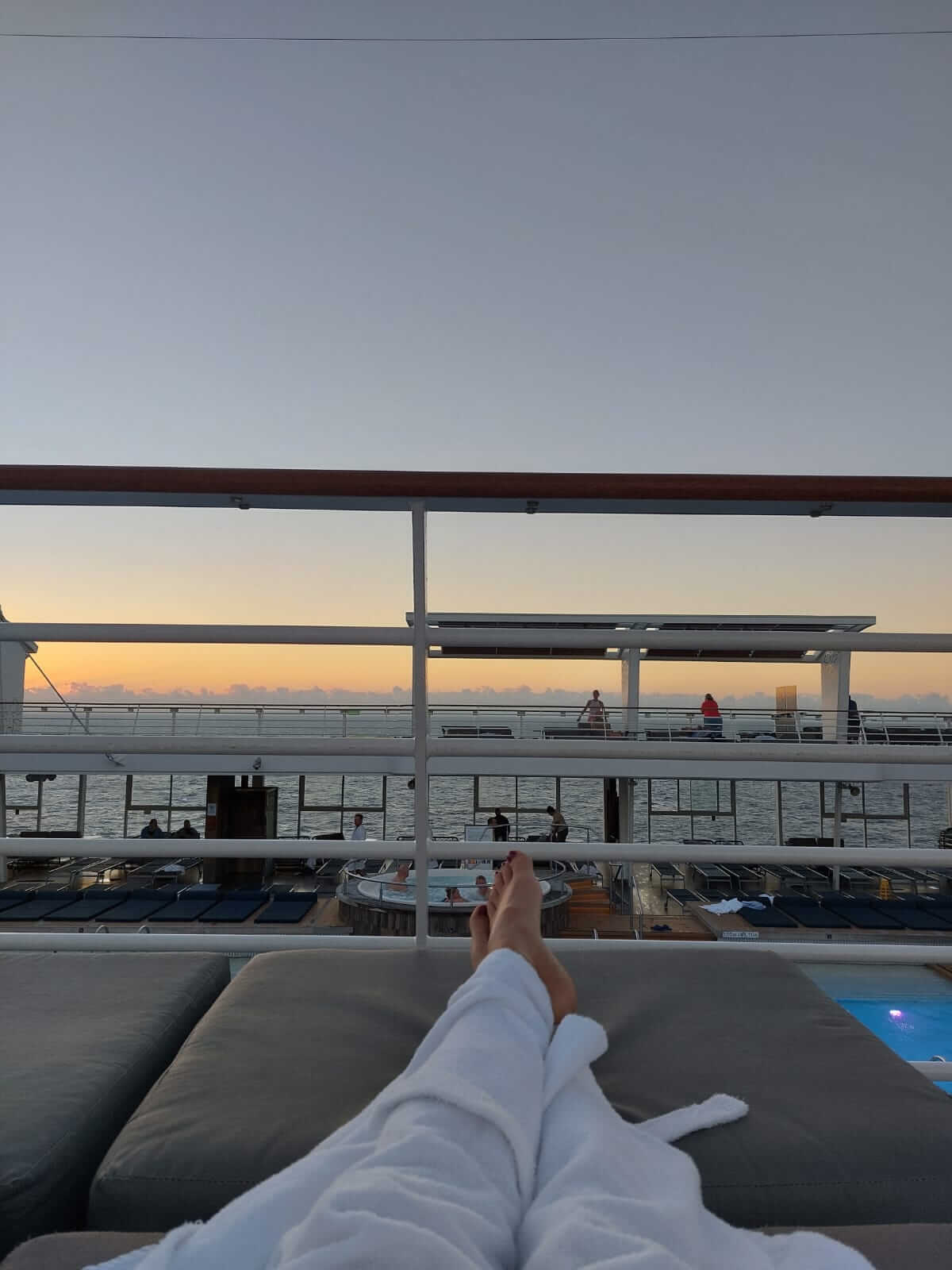 Danach heißt es: Sonne tanken und das leckere Frühstück verdauen auf Deck 5. Neben dem an Seetagen doch recht vollen Pooldeck gibt es auf Deck 5 einen schöne kleinen Bereich mit super bequemen gepolsterten Liegestühlen, der oft noch ein Geheimtipp ist.